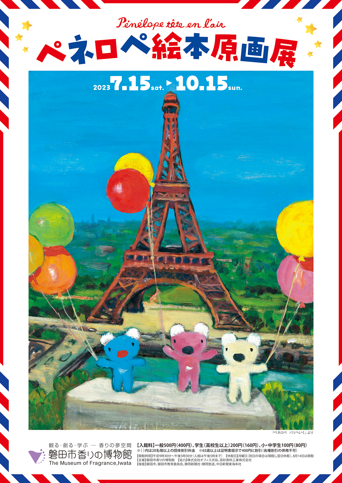 2023年7月15日(土)~10月15日(日)の期間、静岡県磐田市にある「磐田市香りの博物館」にて「ペネロペ絵本原画展」を開催いたします。本展では、絵本原画約100点とスケッチなどを展示いたします。また、期間中は1Fミュージアムショップにてペネロペグッズを販売します。